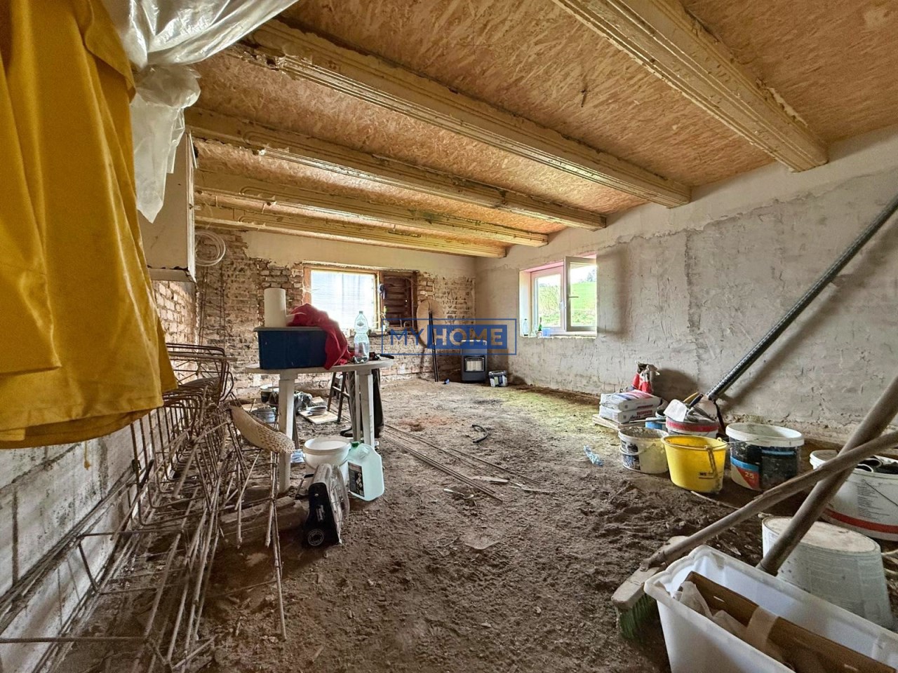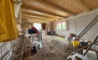 Na dzień dzisiejszy wykonany nowy dach, wymienione okna, częściowo rozprowadzona elektryka, oraz opaska drenażowa w okół budynku.